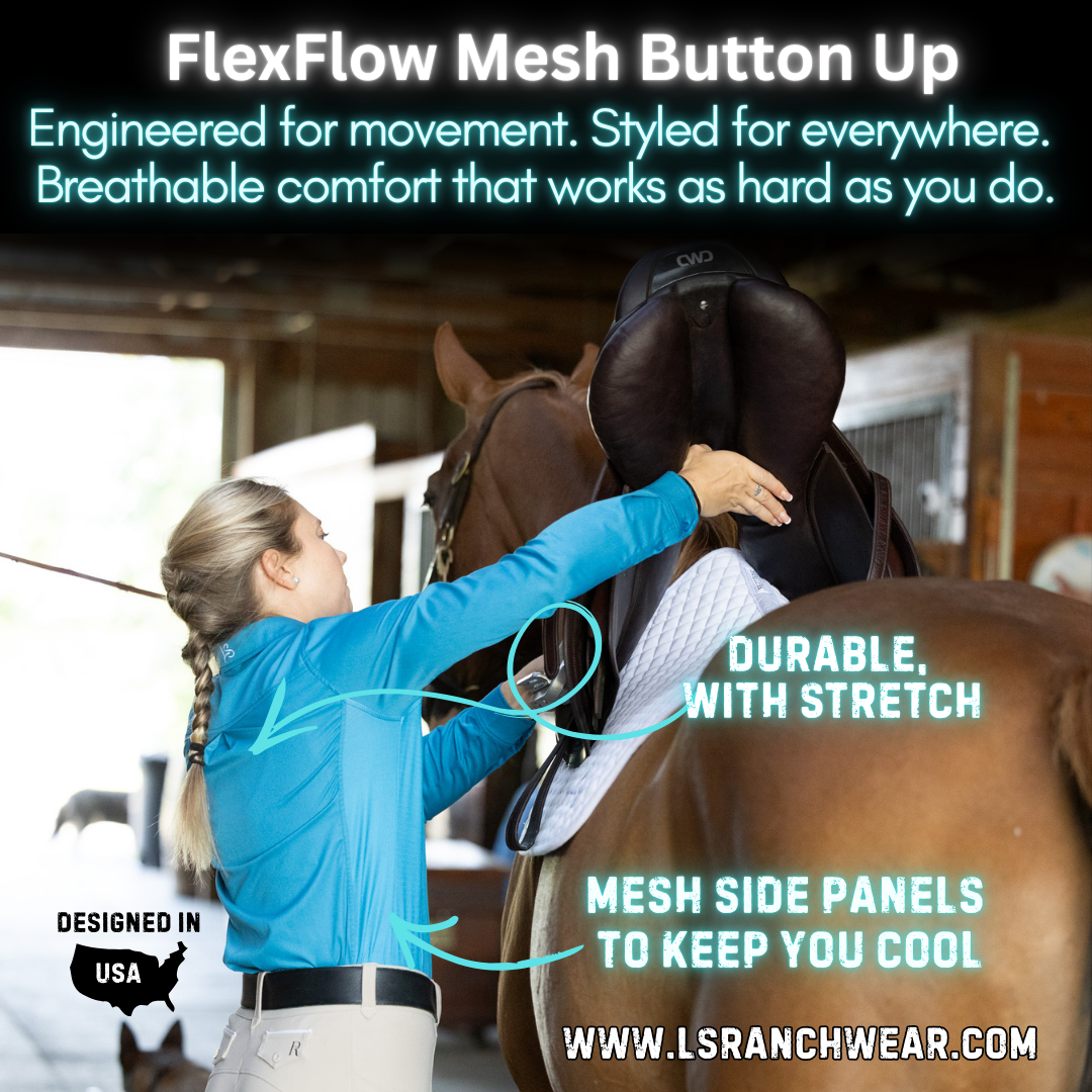 LS Ranch Wear FlexFlow Mesh Button-Up Women's— Breathable, Stretch-Fit Western Shirt